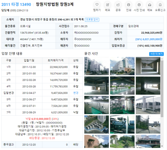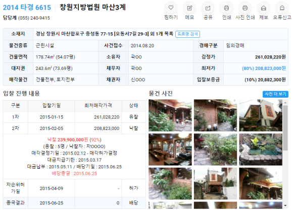 1심(창원지방법원 마산지원 2015가합151호)에서는 낙찰자가 승소했다.