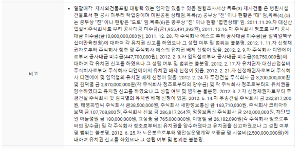 건설사별로 미수금 19억5천만원, 108억원, 44억원, 9000원.