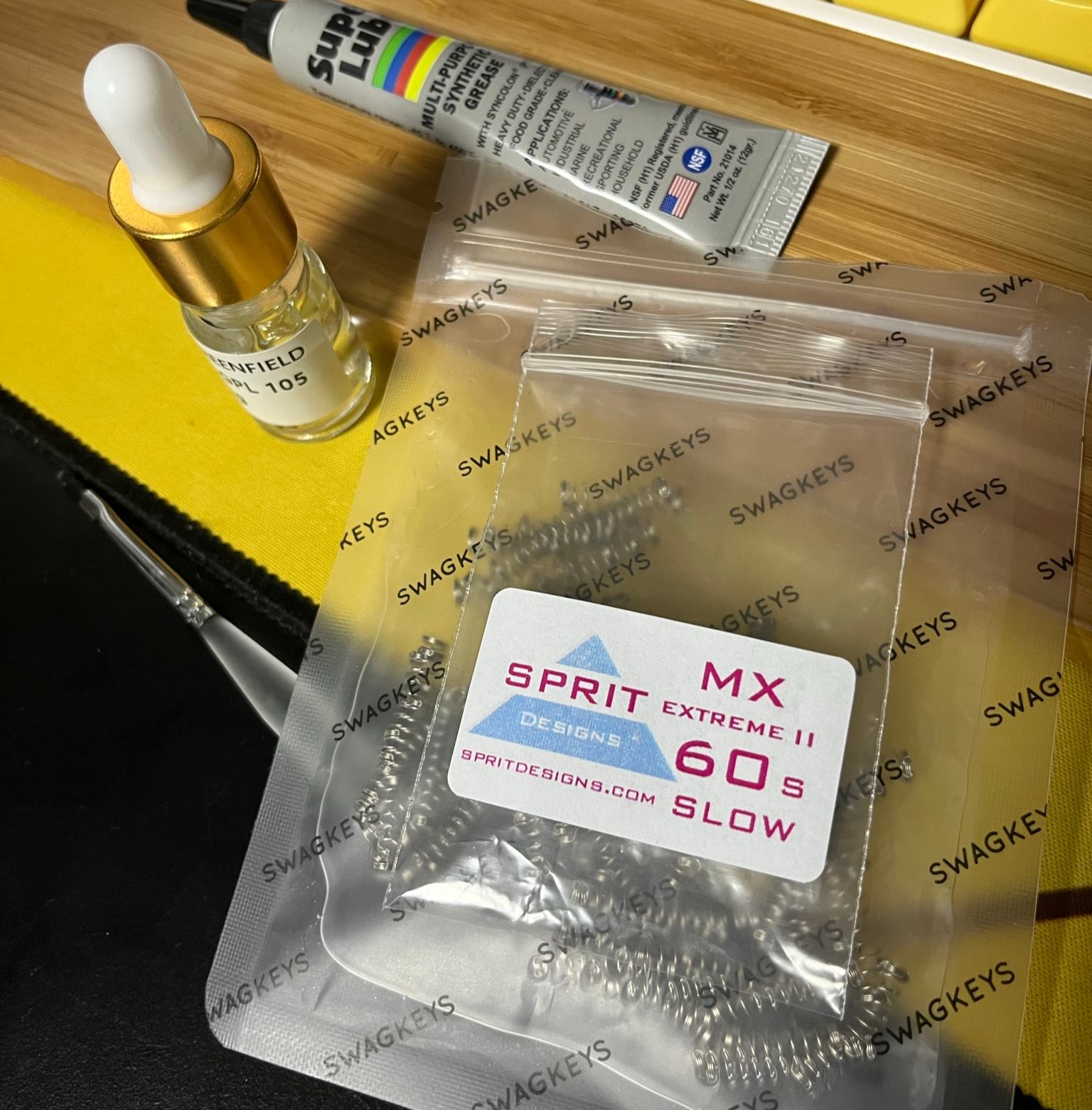 • 윤활제: Krytox 105(스프링 윤활용 약한 그리스) / Super Lube Grease(스위치 윤활용 고점도 그리스)
