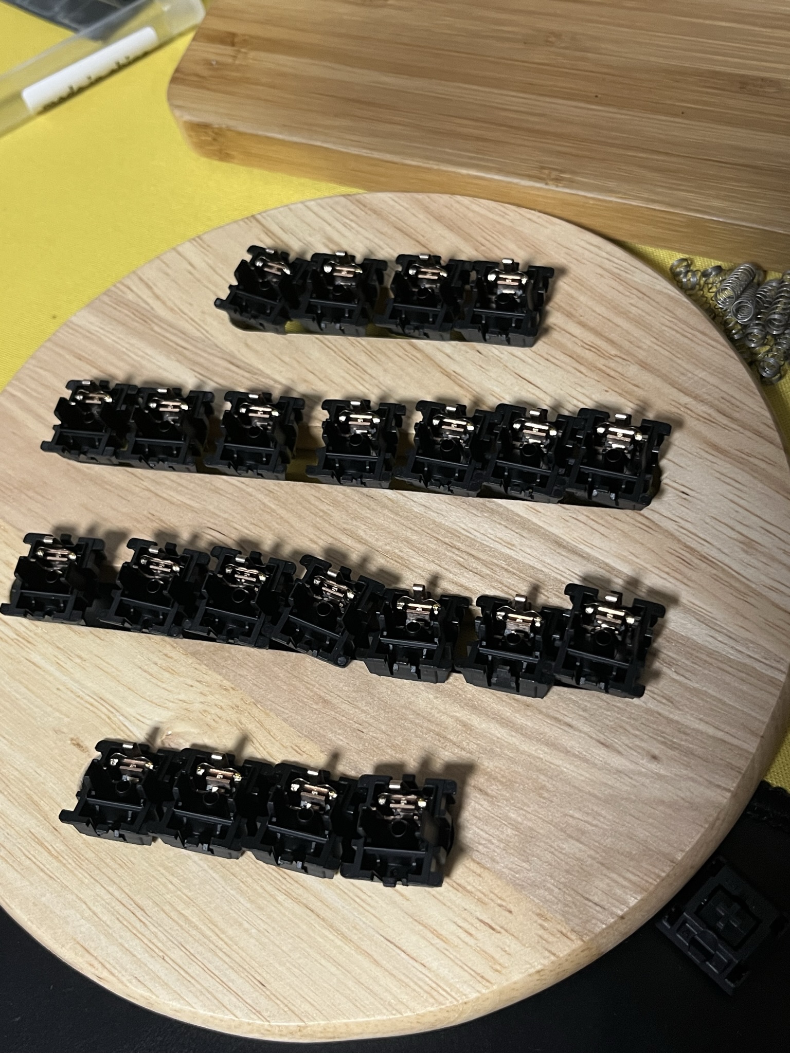 오늘은 일명 “삼신흑”(체리블랙 축 3차 버전)에 기름칠을 하기로 했는데요, 이것이 바로 기본 중의 기본 스위치입니다.