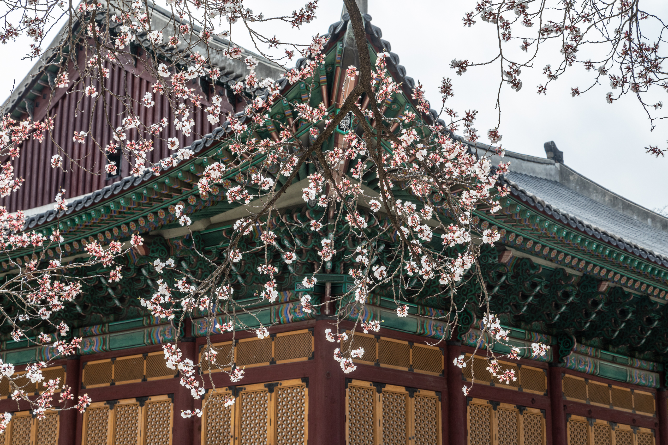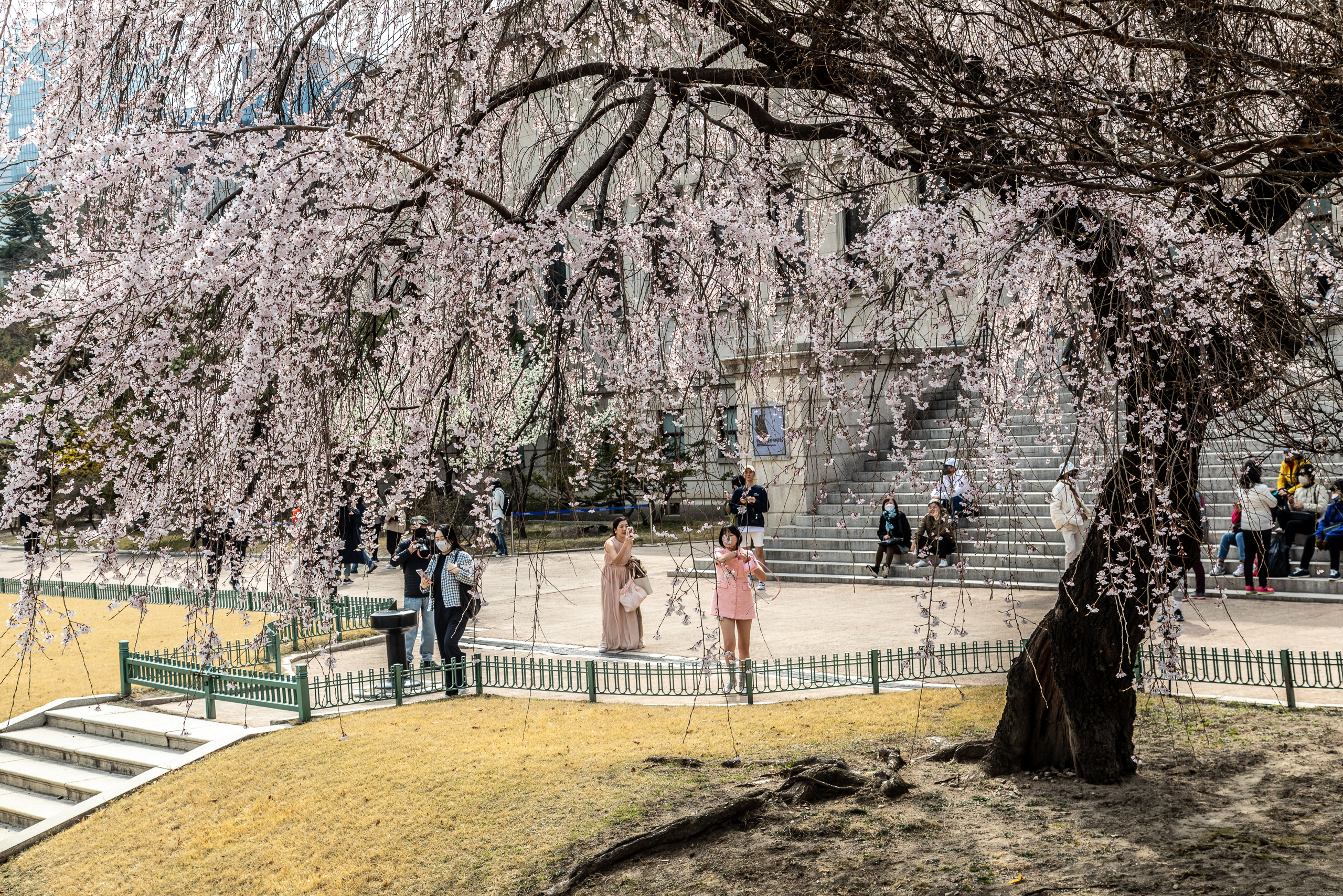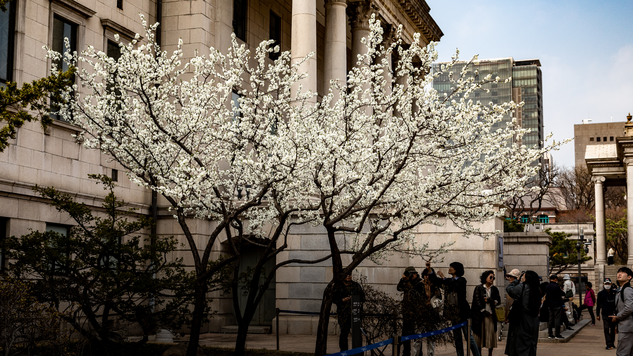 덕수궁 돌담길을 따라 만개한 벚꽃.
