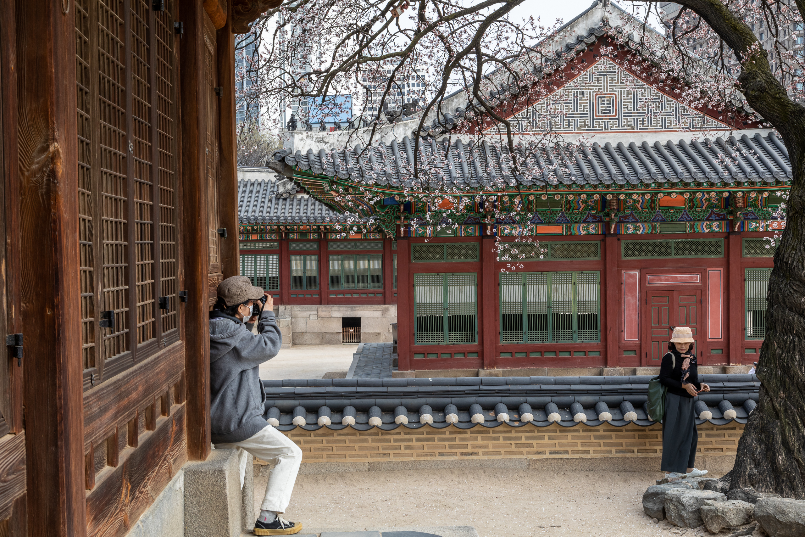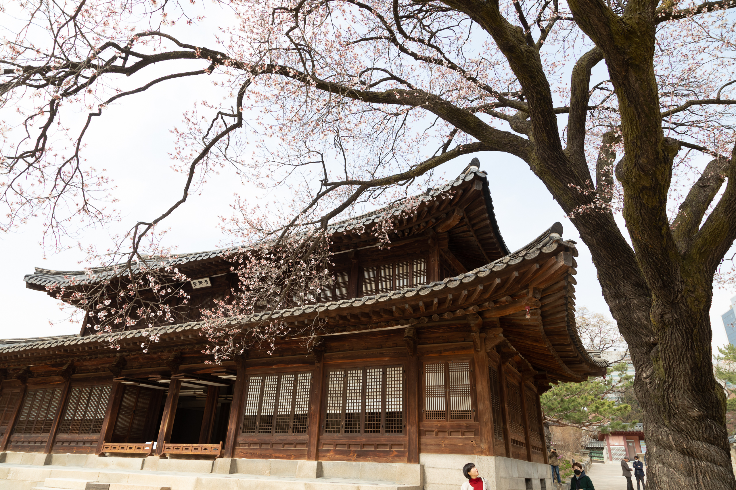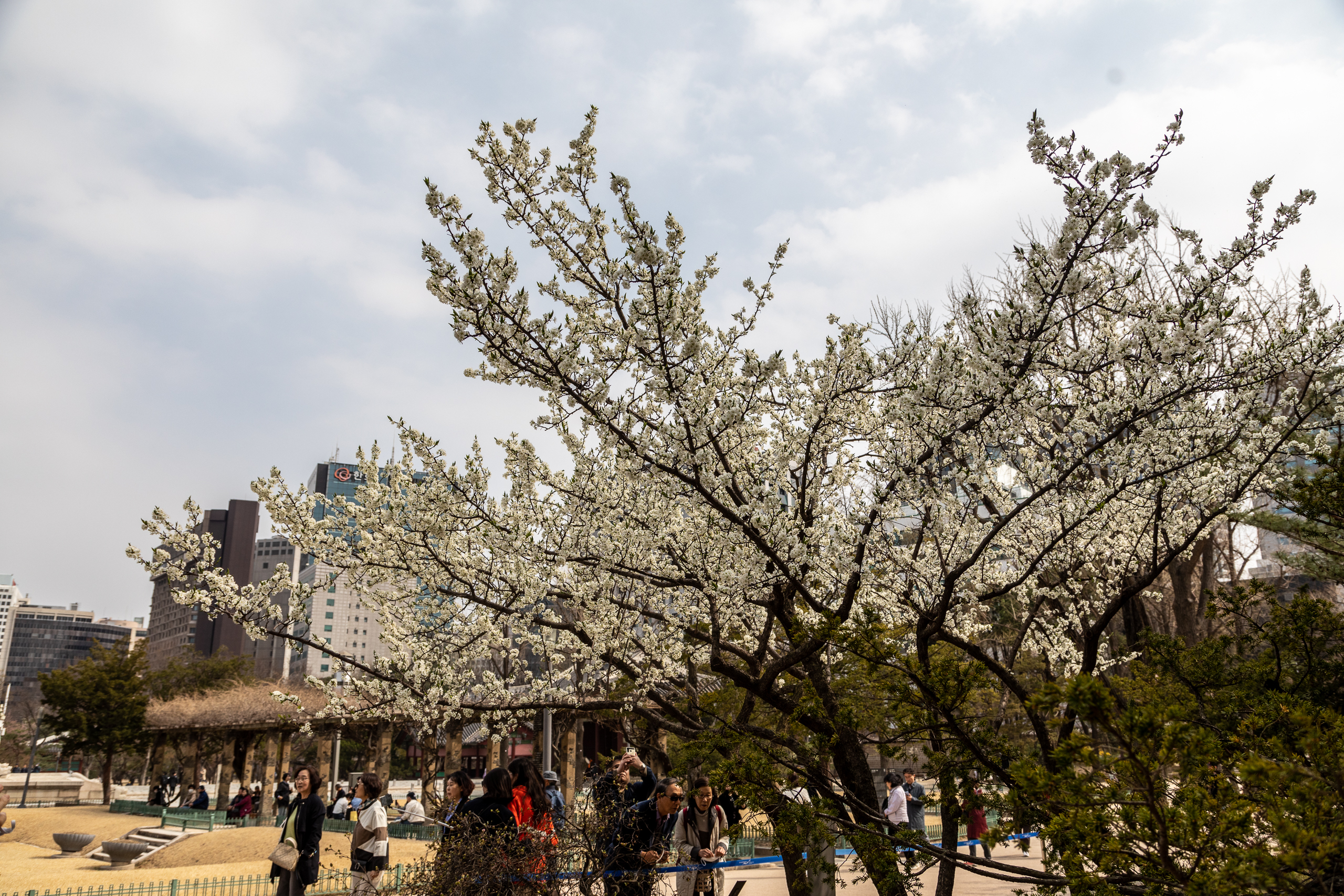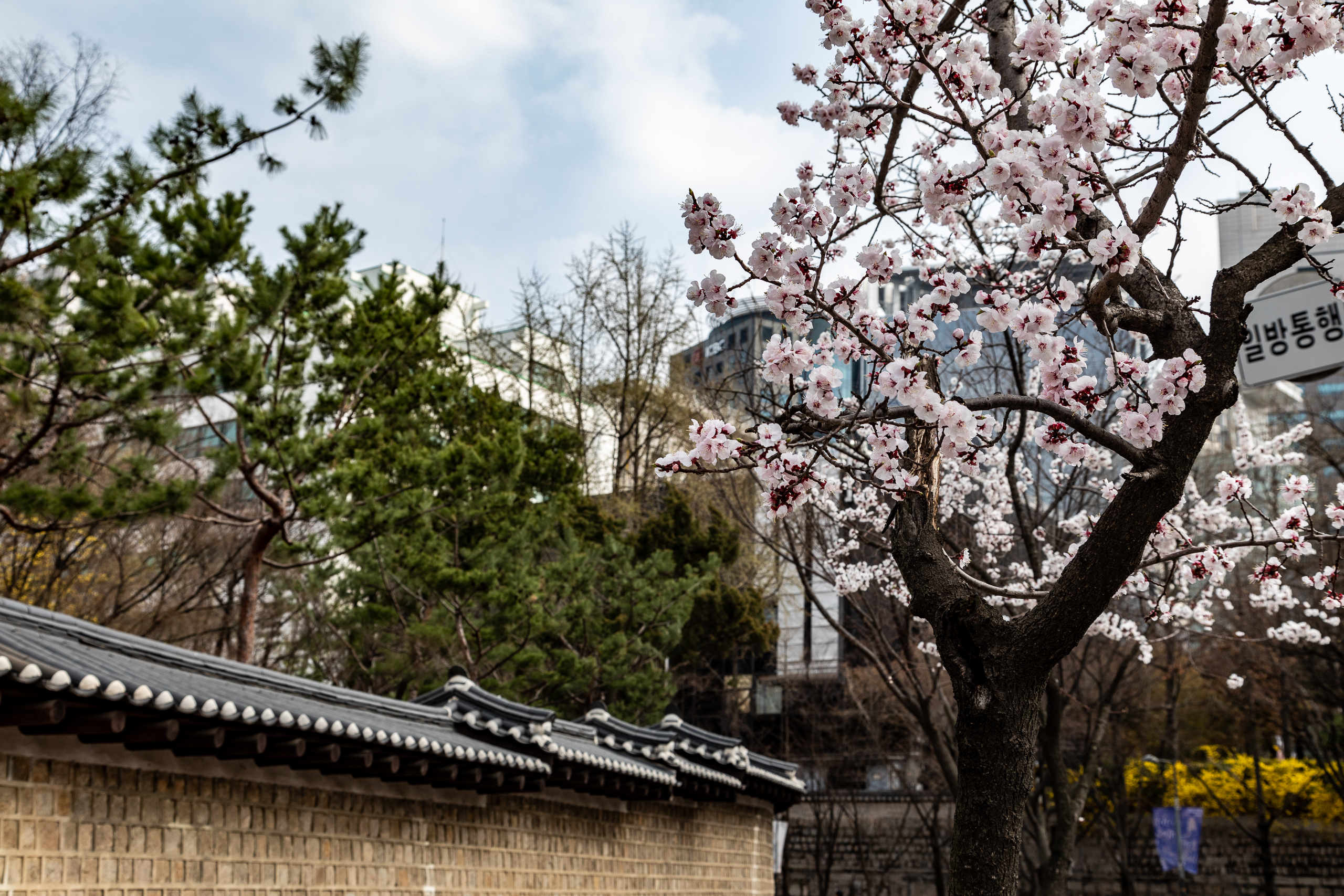 덕수궁 돌담길을 따라 만개한 벚꽃.