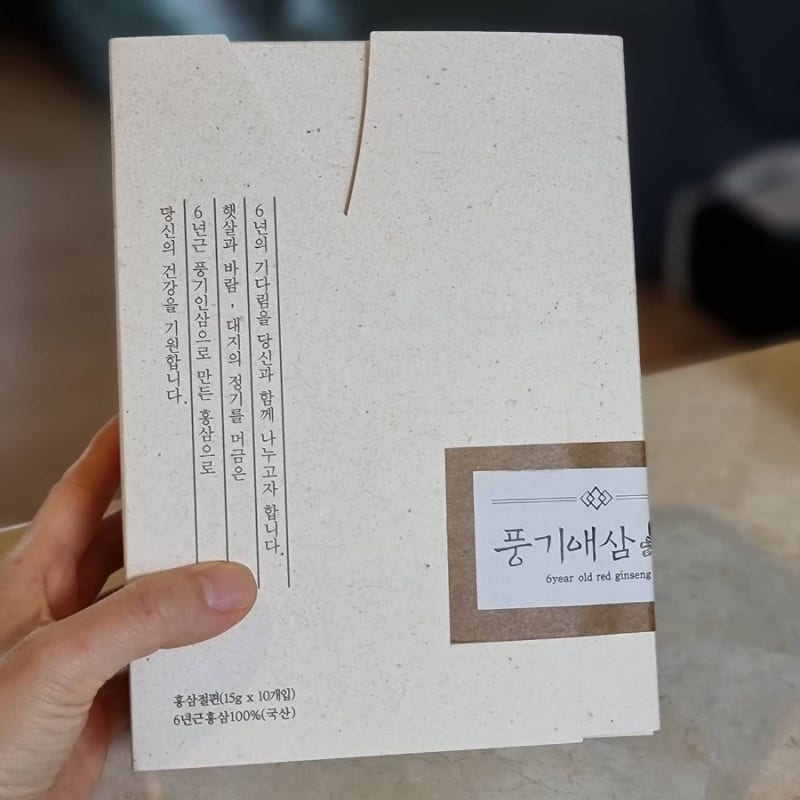 마음에 드는 또 다른 점은 올리고당이나 과당을 전혀 넣지 않고 조청룡 명인 강봉석 명인이 만든 꿀과 조청룡만을 사용하여 7~8일의 기간에 걸쳐 당침해로 만든 6년근 홍삼절편이었습니다!!마음에 드는 또 다른 점은 올리고당이나 과당을 전혀 넣지 않고 조청룡 명인 강봉석 명인이 만든 꿀과 조청룡만을 사용하여 7~8일의 기간에 걸쳐 당침해로 만든 6년근 홍삼절편이었습니다!!풍기애삼함도 고급스럽고 한국의 전통의상을 연상시키는 디자인이었습니다.부모님 선물이나 수능 선물세트, 답례품 등으로 딱 좋을 것 같아요~상자를 열어보니 풍기애삼 대표님이 적어서 보내주신 글이 적혀있어서패키지 상자를 열어보니 풍기애삼 홍삼 절편이 15g씩 소포장되어 10개입이었습니다!개별포장이 되어있어서 간편하게 먹을수 있는점이 좋더라구요~절취선도 있고 한지 재질이라 오픈하기 쉬웠어요!개봉하면 한번에 먹기 좋은 양으로 직접 풍기애삼홍삼 절편을 섭취해보니 쫀득한 식감에 과도하게 쓰거나 달지 않고 맛있게 드실 수 있었어요~맛있고 건강한 풍기애삼 6년근 홍삼절편 수능 선물세트로 추천드립니다.^^풍기에삼 6년근 홍삼절편 수험생 선물추천 : 풍기에삼 [풍기에삼] 풍기에삼과 6년근 풍기인삼으로 만든 홍삼 농축액, 홍삼 추출물을 판매하고 있는 풍기에삼입니다.smartstore.naver.com풍기에삼 6년근 홍삼절편 수험생 선물추천 : 풍기에삼 [풍기에삼] 풍기에삼과 6년근 풍기인삼으로 만든 홍삼 농축액, 홍삼 추출물을 판매하고 있는 풍기에삼입니다.smartstore.naver.com풍기에삼 6년근 홍삼절편 수험생 선물추천 : 풍기에삼 [풍기에삼] 풍기에삼과 6년근 풍기인삼으로 만든 홍삼 농축액, 홍삼 추출물을 판매하고 있는 풍기에삼입니다.smartstore.naver.com