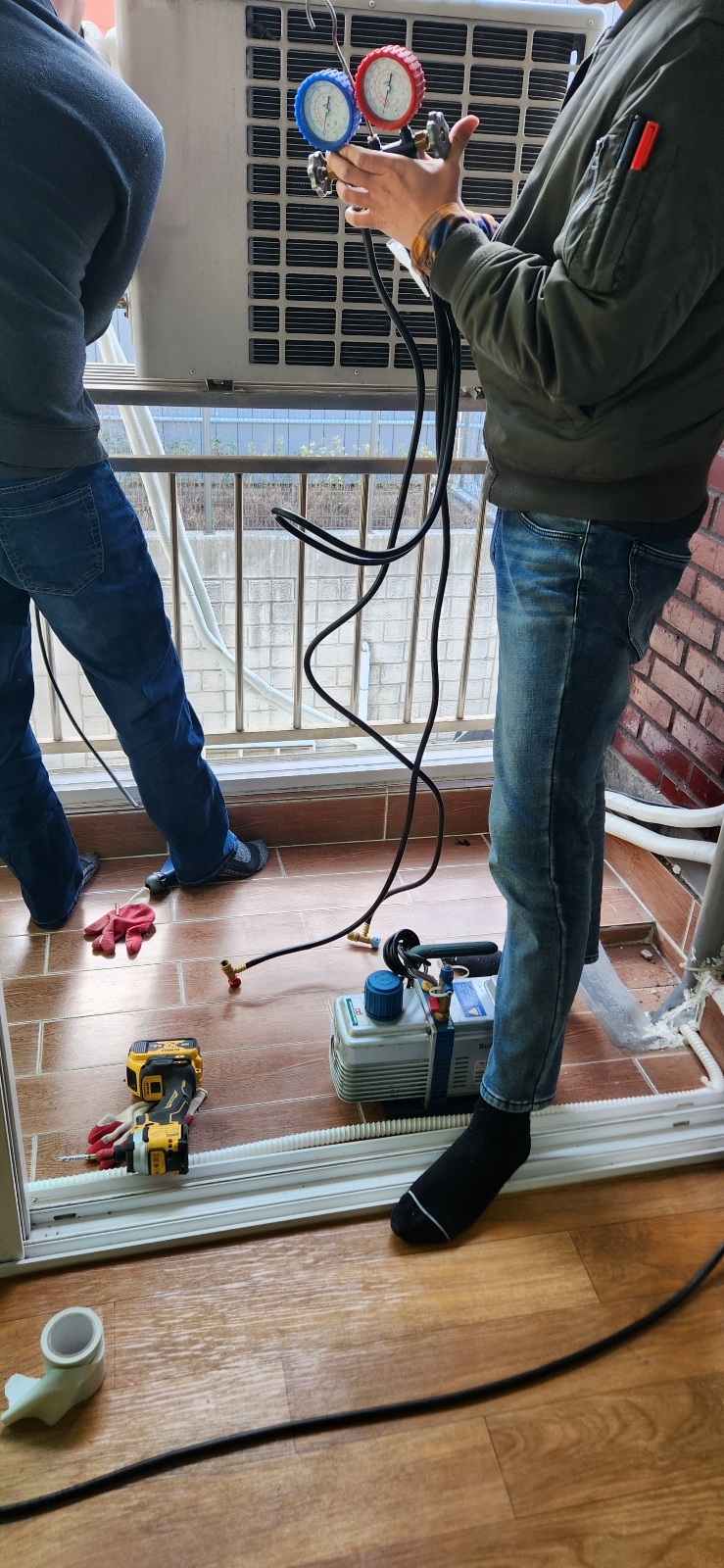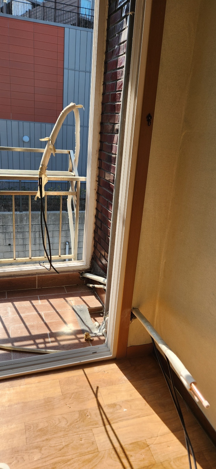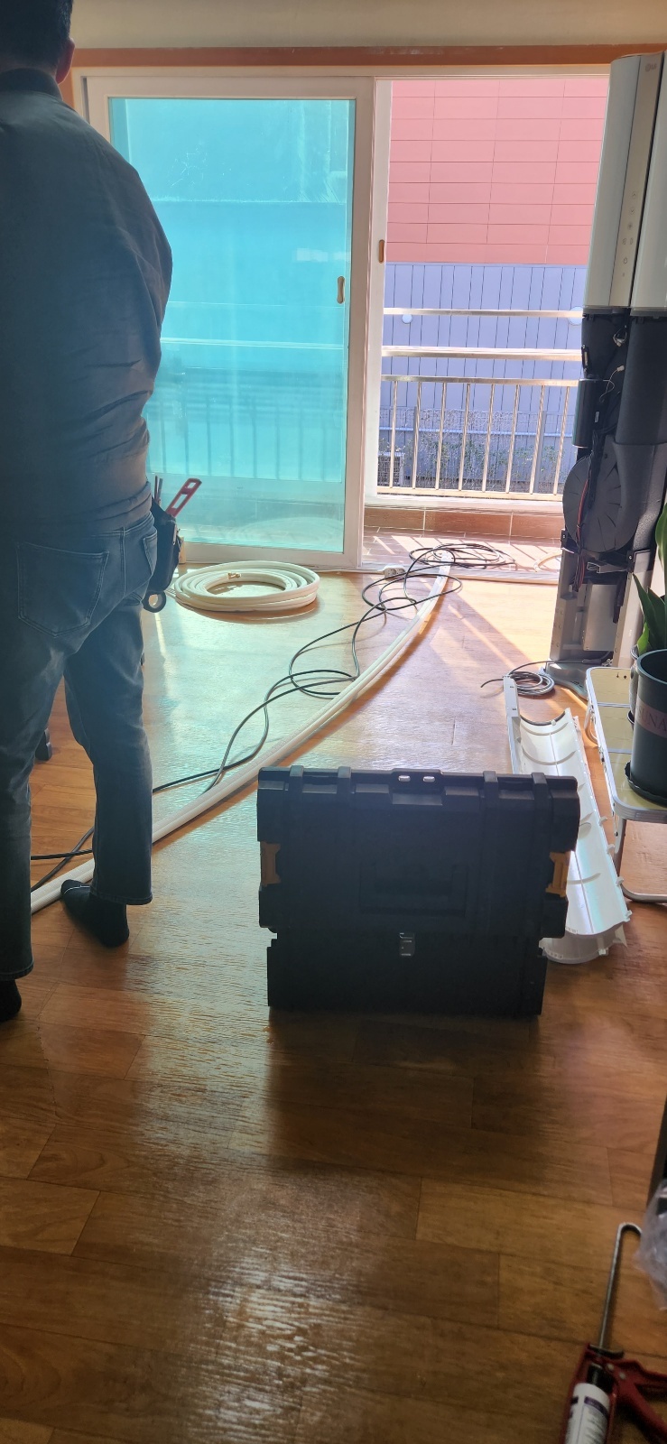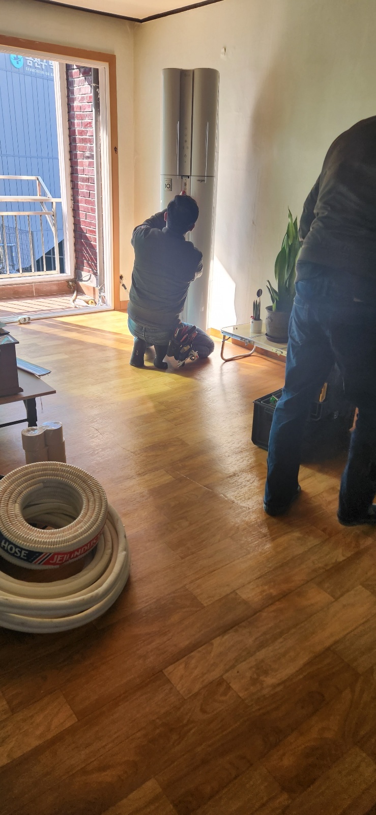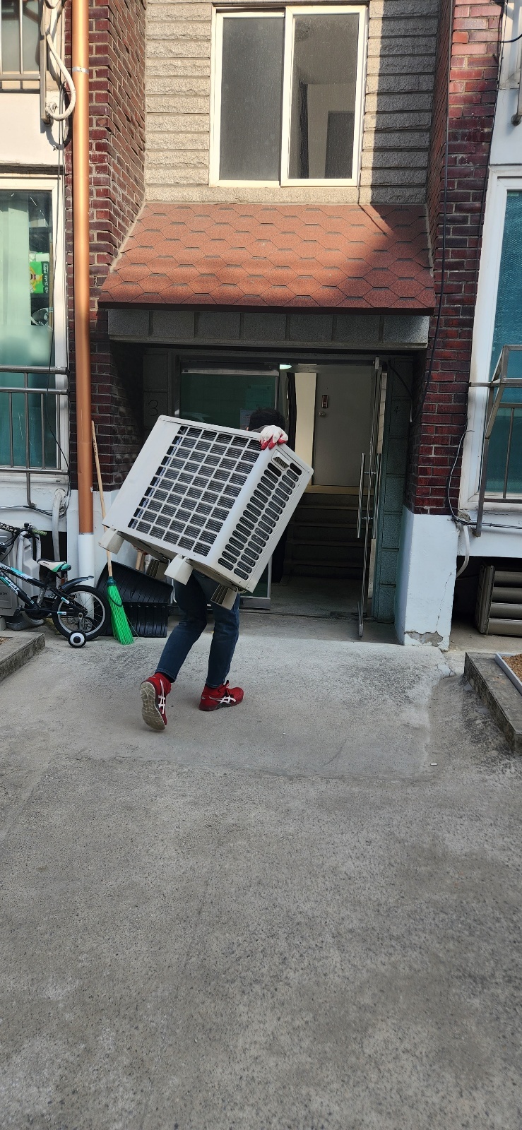 저는 키가 작아서 거기에서 실외기를 들어올릴 수 없습니다.