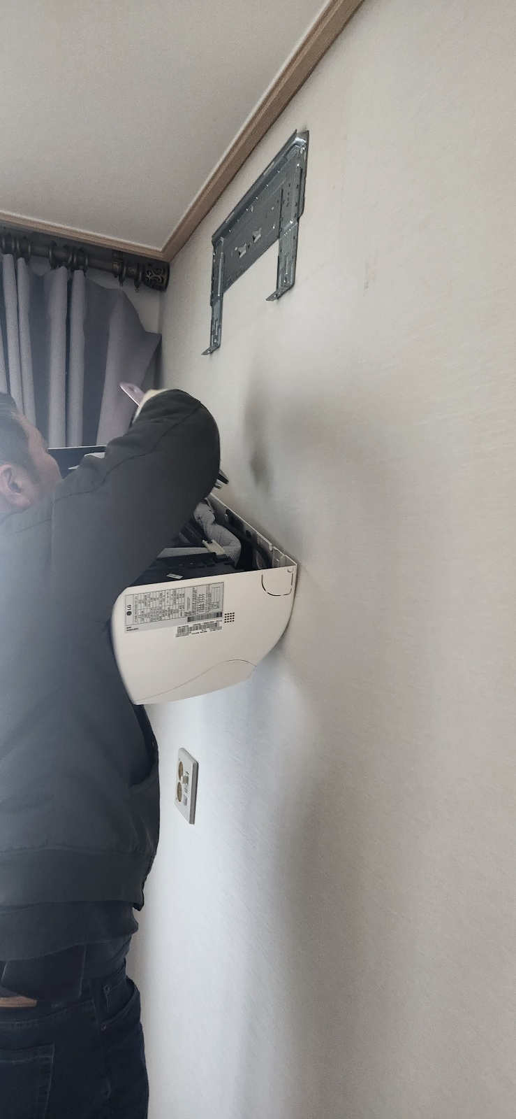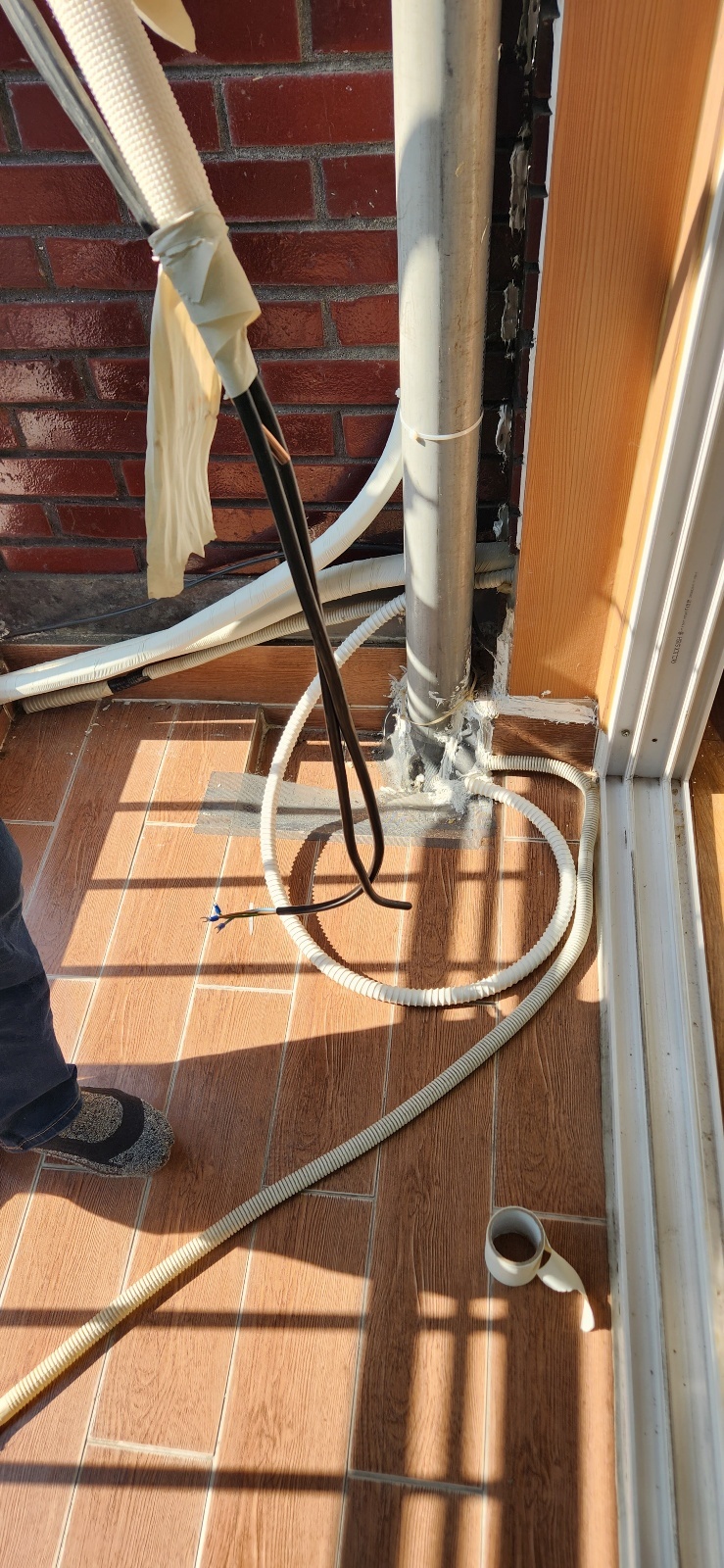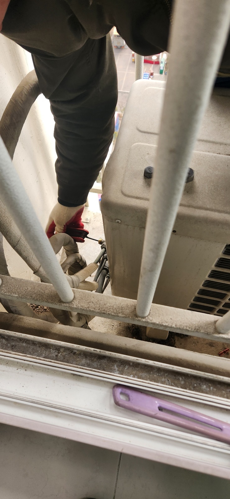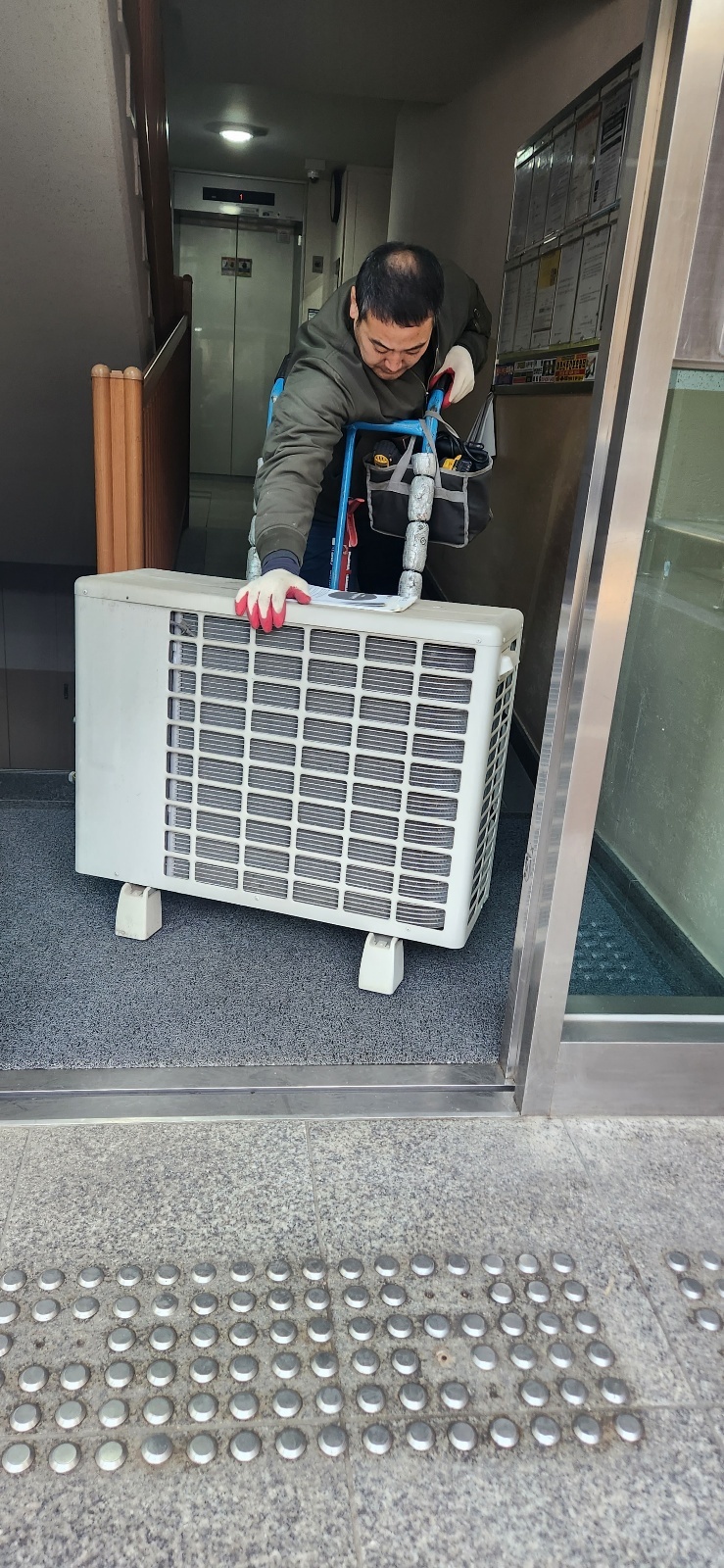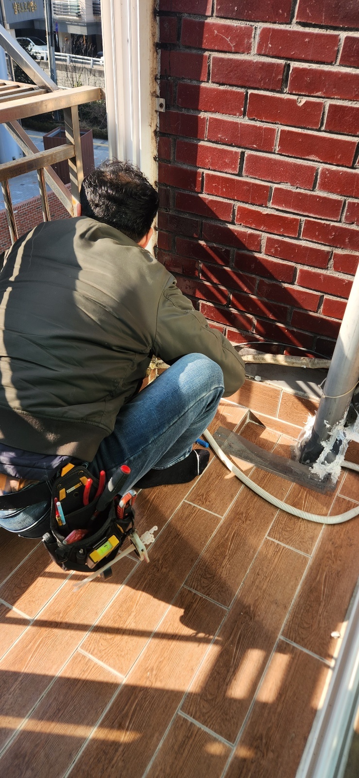 저는 키가 작아서 거기에서 실외기를 들어올릴 수 없습니다.