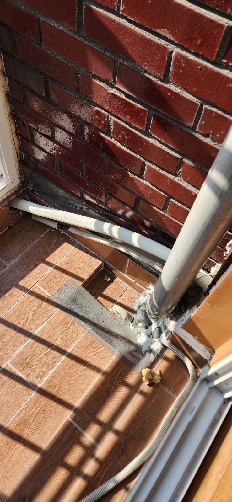 태피스트리는 창문이었기 때문에 배관을 제거했습니다.