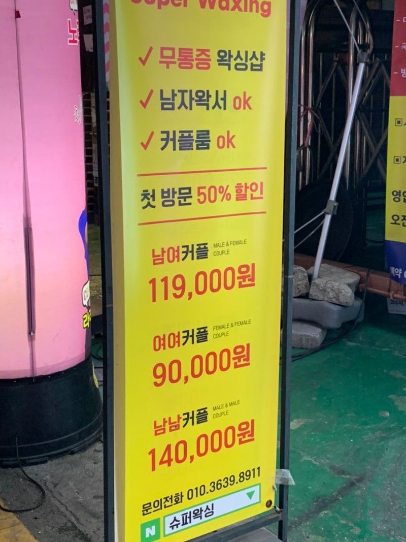 왁싱샵을 처음 방문하시는 분들은 고가의 왁싱에 쉽게 도전하기 어려우셔서 제가 다녀온 역삼 왁싱샵은 처음 방문하시는 분들께만 50% 할인행사를 진행하고 있습니다. 친구나 연인과 함께 방문하여 함께 시술할 수 있는 남/녀/남커플 왁싱 가격을 소폭 할인받을 수 있는지 확인해보세요.
