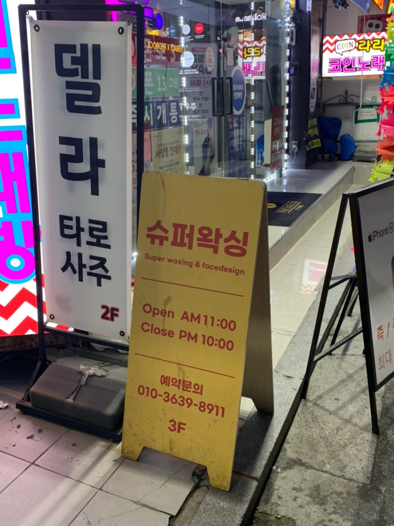 노란색 간판이 있는 건물에 들어와 3층으로 올라가는 계단을 오르면 슈퍼왁싱 입구에 들어서니 따뜻한 색감의 조명이 어우러져 아름다워 보인다.