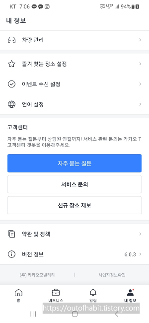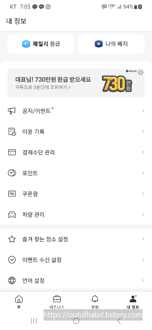 카카오 T 앱에 들어가면 우측 하단