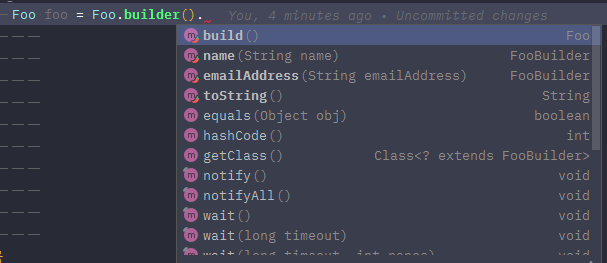 이제 lombok의 @Builder 주석을 클래스에 첨부하면 어떤 일이 발생하는지 살펴보겠습니다.