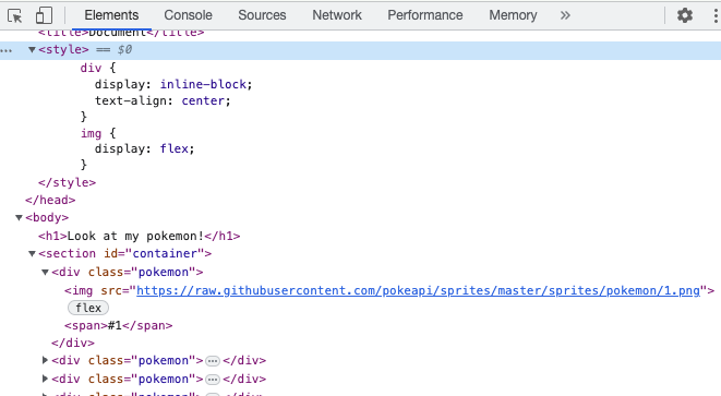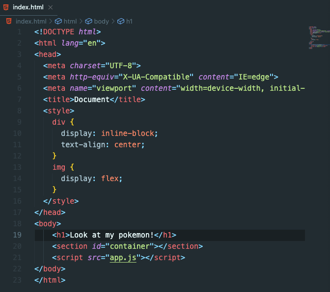 1. HTML 파일의 컨테이너를 선택하고 Pokemon URL 변수를 만듭니다.