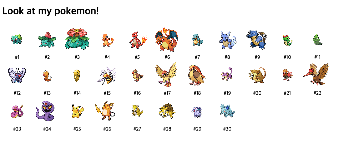 3. 루프로 30마리의 포켓몬을 만듭니다.