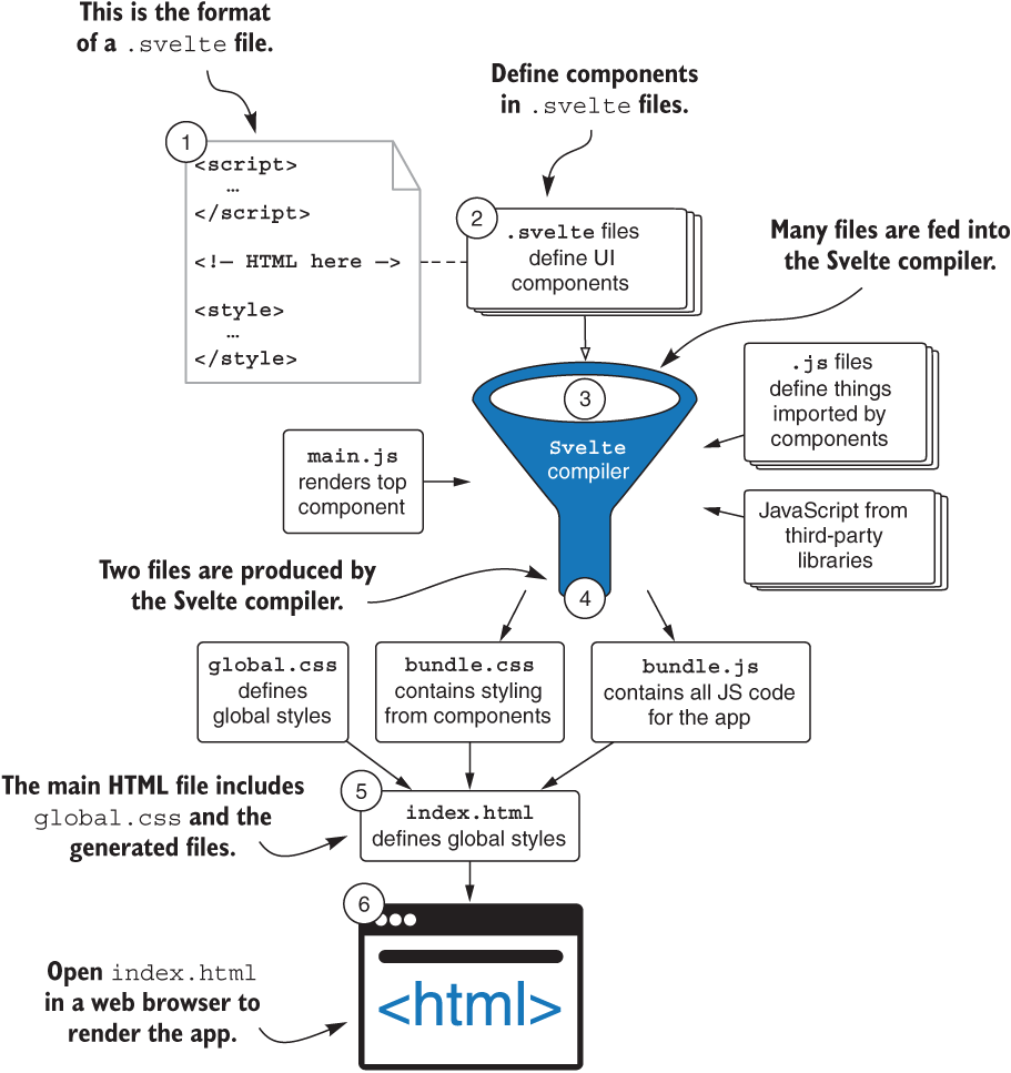 - 브라우저에서 UI를 그려서 처리하는 React나 Vue와 달리 앱은 빌드 시 JavaScript 코드로 변경됩니다.